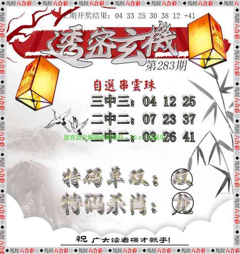 283期平特:【狗】 283期二连:【狗牛】【龙猴】 283期三连:【狗牛猪】【龙猴蛇】 |